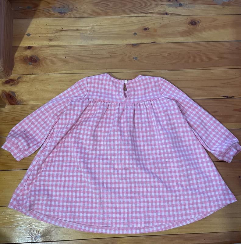 Детское платье в клетку с котиком. Спереди 2 карманчика,позади застегивается на пуговицу, в хорошем состоянии