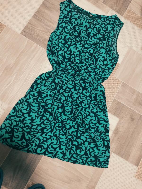 яркое бирюза с синим цвет.талия резинка по бокам карманы.на рост 146-158. длина 82 в груди по 50 талия по 46 высота топа 40 тонкая вискоза на лето супер состояние отличное оплата карта почта любая
