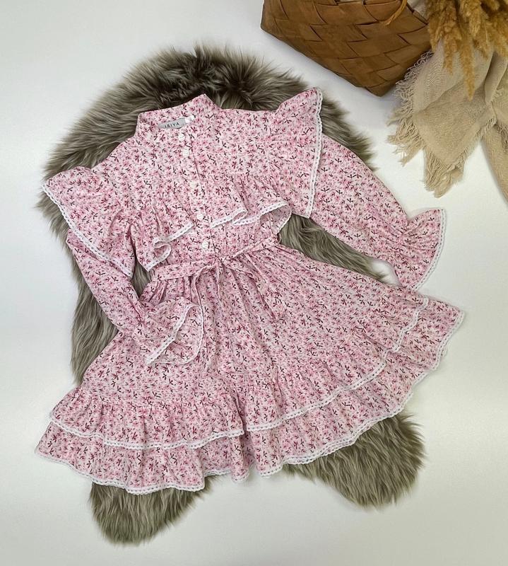 арт 4543 НОВИНКА! Весняно-літня сукня з тканини софт прикрашена грайливими воланами обшиті бавовняним мереживом в талії та рукава під резиночку поясок у комплекті РЕКОМЕНДУЮ! зріст/довж./пог/рукав від горловини похибка +-2см 128/70/35/54-1шт 140/75/37/60-2шт 146/77/39/63-1шт 152/79/42/65-2шт