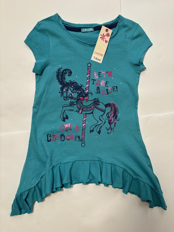 - колір морської хвилі - розмір 7-8 років(зріст 128 см) - хлопок - заміри:груди 66 см;довжина попереду 48 см; по боці 60 см