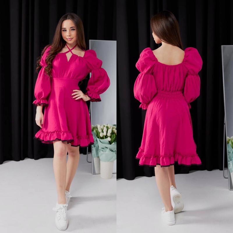Таня арт 4802 Невероятного красоты платье очень нежно смотрится в талии сзади под резинку пышный рукав фонариком из ткани пермиум качества муслин и сеточно Спереди функционирующая веревка Супер качество! Рост/длина/пог/рукав от горловины похибка+-2см 146-152/77/44/52-1шт