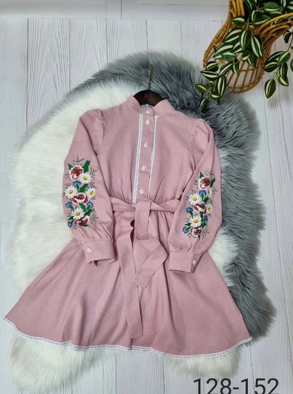 Ніжна сукня з натуральної тканини льон талія на резинці,поясок вкомплекті сперезу застібається на ґудзики рукавчик прикрашений натуральною вишивкою Гарнюня🥰 🎈146(1 шт)-довжина 81,пог 39,рукав від плеча 63 🎈152(1 шт)-довжина 83,пог 41,рукав від плеча 67 +-2 см