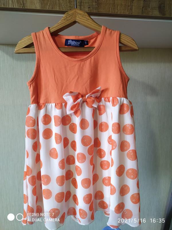 Виробник: Інший виробник Тип одягу: Плаття Ошатне плаття Future Generation, комбіноване — трикотаж (верх) з тканиною (спідниця), з нижньою спідницею. Без рукавів. Матеріал верху котон, спідниця із шифону (поліестер), спідня спідниця з віскози. Завищена талія. Зріст 110. У чудовому стані. Заміри: Від талії до низу довжина 36 см. ширина в плечах — 24 см ширина в пахвах — 30 см довжина загальна — 53 см