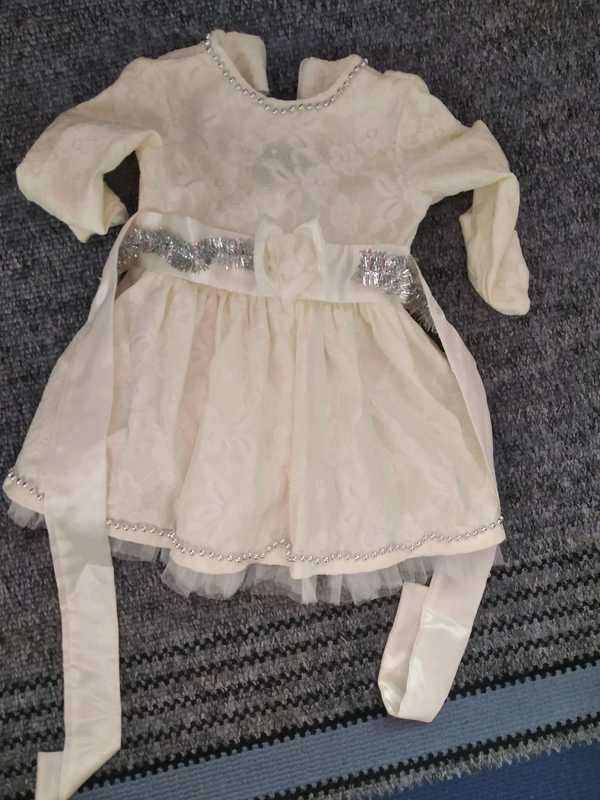 Виробник: Інший виробник Тип одягу: Плаття Ажурне плаття, молочного кольору. декор можна зняти ідеальний стан ,один раз на ранок одягнене,заміри довжина від плеча -49 см, талія 27 у вільному стані,,плечі 24см,приблизно 2-2.5 роки