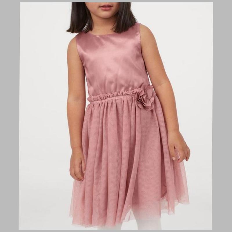 Красивое праздничное розовое (пудра) платье на возраст 8-10 лет.Фатин с блистками + красивый цветок.