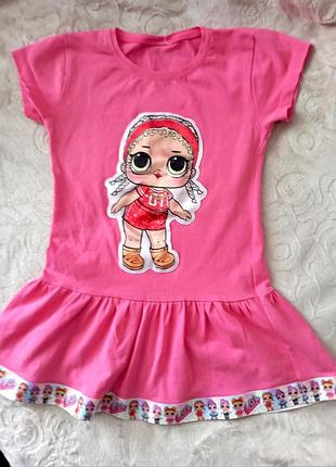 наше любимое платье яркое качество шикарное производство Турция ткань коттон Стрейч состояние 5 из 5 без пятен и нюансов нашивка L.O.L. не потертота глазки при нажатии светятся как платье а затем как ту ночку полость окружности груди 30 см тянется до 35 см длина 51 см рукав от горловины 14 см