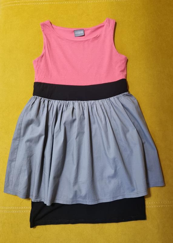 Платье для девочки, 8-9 лет, рост 134см из комбинированных материалов (вискоза, хлопок, полиэстер). Выглядит ярко и стильно.