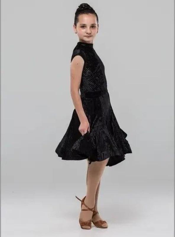 Рейтинговое платье выполнено таким образом, чтобы создается игра линий и перелива бархата. Купальник застегивается на потайную «молнию» и кнопки на трусиках. Горловина – «стойкая». Рукав – короткий. Юбка велюровая на широком поясе, состоит из шести клинок «виде». Внизу юбки пришитый регулин 7 см, который отлично держит форму.42р