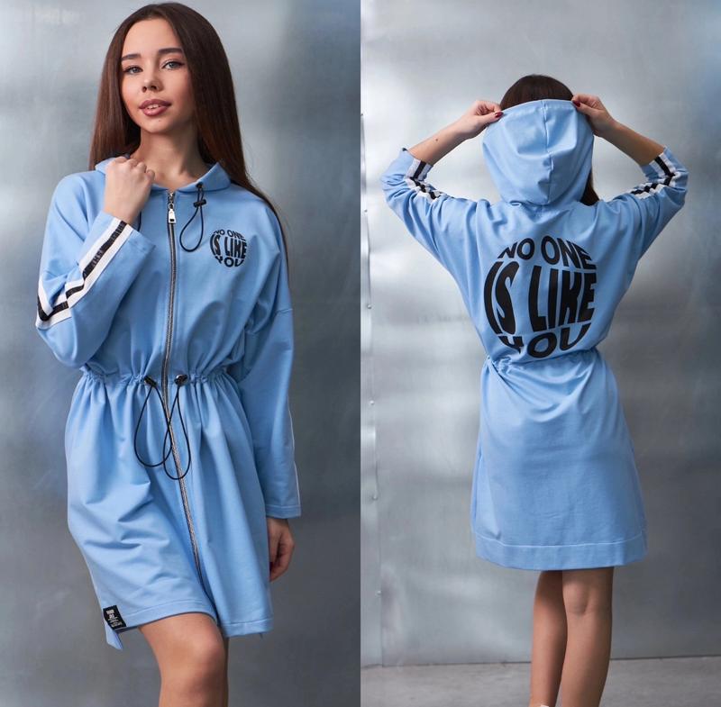 арт 4357 Супер новинка Платье-туника можно носит отдельно как платье а также под лосины ткань двунитка пенье с качественным накатом спереди и сзади с капюшоном на утяжке рукава украшены лампасами впереди молния в талии утяжка рост/длина по переду/пог/рукав от горловины похибка+-2см 140/70/56/55-1шт Тан