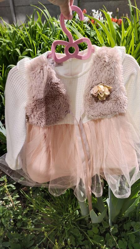 Теплое платье для девочки. Желетка пришита, заколка с цветком отцепится. Выглядит шикарно. Размер 74-80