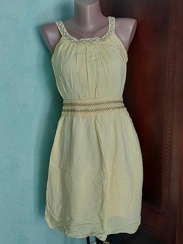 легкое летнее платье сарафан, в идеальном состоянии, длина по спинке 83см, ПОГ 42см, пот 35см+ резинка бирки с составом и размером нет на ощупь ткань легкий хлопок.