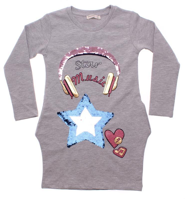 Код: 12624-21977 Стильна, якісна, натуральна сукня (туніка) для дівчинки з кишенями; колір: сірий; виробник: Breeze, Туреччина; зріст: 116 (5-6), 128 (7-8), 152 (11-12) Дуже красива, стильна, демисезонна, напівприталена сукня світло-сірого кольору з довгим рукавом, відомого в багатьох країнах бренду дитячого одягу Breeze (Туреччина). Дана модель виготовлена з якісної турецької бавовни середньої щільності з домішком невеликого відсотку еластану для підтримки форми виробу та характеризується максимальною стійкістю до частого прання, а також міцністю і м'якістю. Модна і класна модель, довжиною вище колін, розширена в області стегон. У бічних швах є невеликі кишеньки. Овальна горловина оброблена подвійною, еластичною трикотажною резинкою. Прикрашає плаття великий принтовий малюнок, розшитий паєтками, і напис вгорі сукні «Star music». Ця універсальна, стильна модель відмінно виглядає як сукнею, так і тунікою і неодмінно підійде Вашій маленькій модниці. Заміри: - р.116: довжина плаття - 60 см, напівобхват грудей - 31,5 см, довжина рукава - 40 см, ширина плечей - 28 см; - р.128: довжина плаття - 66 см, напівобхват грудей - 34 см, довжина рукава - 44 см, ширина плечей - 28,5 см; - р.152): довжина плаття - см, напівобхват грудей - 37,5 см, довжина рукава - 53 см, ширина плечей - 31,5 см. Виробник: Breeze Країна виробник: Туреччина Вид виробу: Сукні Розмір дитячого одягу: 116, 128, 152 Сезон: Весна/Осінь Склад: 95% бавовна, 5% еластан Стан: Новий Стиль: Повсякденний Тип тканини: Бавовна Колір: Сірий Стать: Для дівчаток