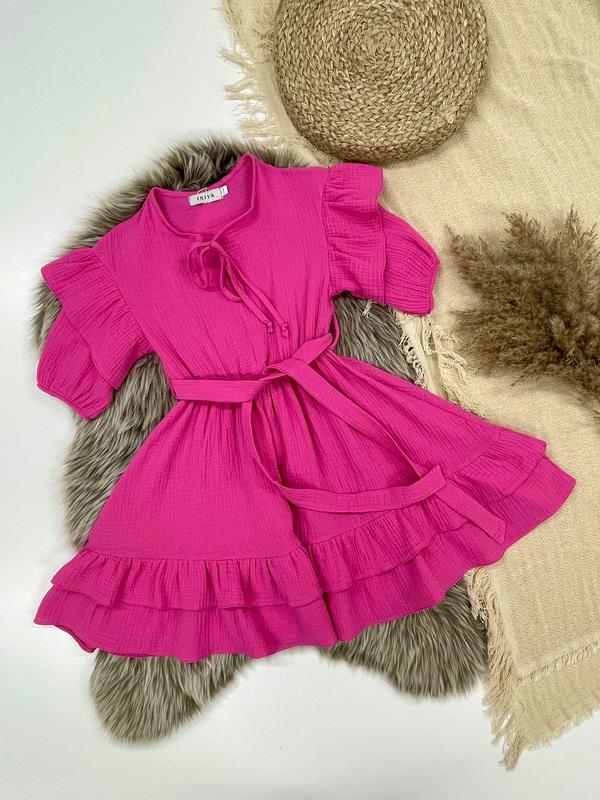Таня арт 4910 Нежное платье невероятной красоты ткань муслин с пышными воланами в талии под резинку и поясок РЕКОМЕНДУЮ! рост/длина/пог/рукав от горловины похибка+-2см 128/67/36/34-2шт 134/70/37/35-2шт 140/72/39/37-2шт 146/74/40/40-2шт 152/77/42/43-2шт