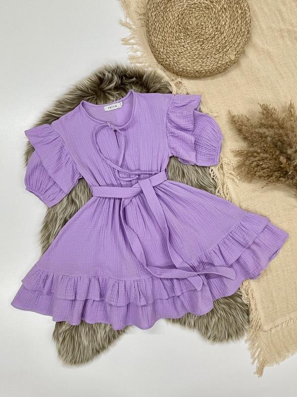 Таня арт 4906 Нежное платье невероятной красоты ткань муслин с пышными воланами в талии под резинку и поясок РЕКОМЕНДУЮ! рост/длина/пог/рукав от горловины похибка+-2см 128/67/36/34-2шт 134/70/37/35-2шт 140/72/39/37-2шт 146/74/40/40-2шт 152/77/42/43-2шт