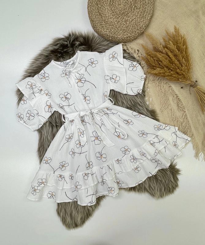Таня арт 4766 Нежное платье невероятной красоты ткань муслин с пышными воланами в талии под резинку и поясок РЕКОМЕНДУЮ! рост/длина/пог/рукав от горловины похибка+-2см 134/70/37/35-1шт 140/72/39/37-1шт 146/74/40/40-1шт 152/77/42/43-1шт