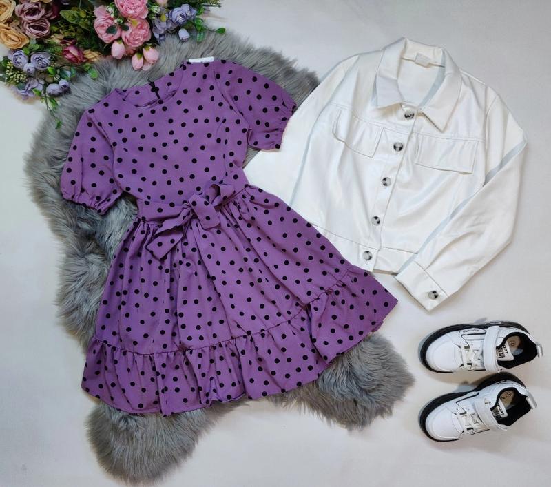 Модный комплект для девочки Ткань куртка экокожа, платье софт Поясок в комплекте платье длин/пог/длин куртки/пог 140 р-70/32/42/40 158 р-81/35/46/42