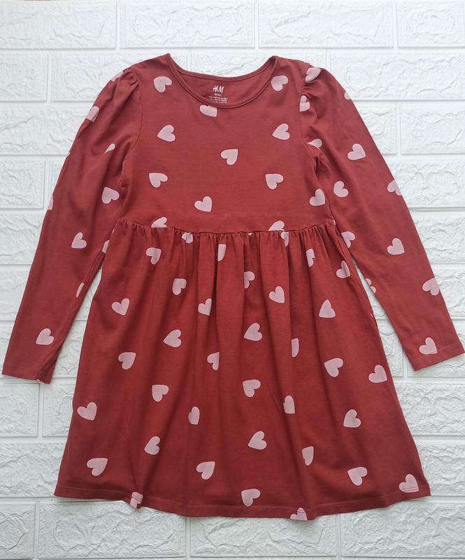 Тонкое коттоновое платье H&M на девочку 6-8 лет рост 122-128 см. В очень хорошем состоянии, без дефектов. В бордовом цвете с розовыми сердечками.