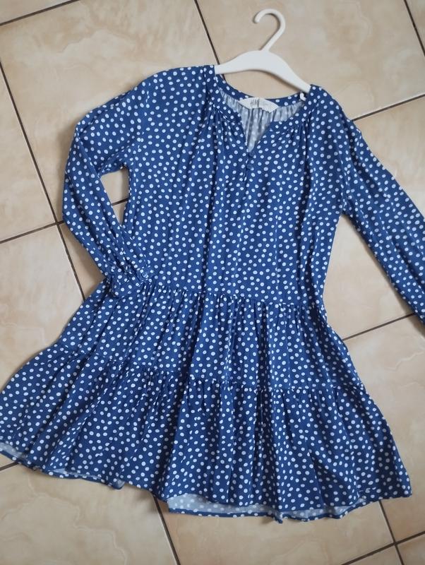 Яркое платье H&M р. 122-128. Отличное состояние, приобретенная новой на официальном сайте. Длина 66 см, ширина под рукавами 40 см, рукав от горловины 51,5 см. Имеет едва-заметную затяжку у пуговицы (последняя фото).