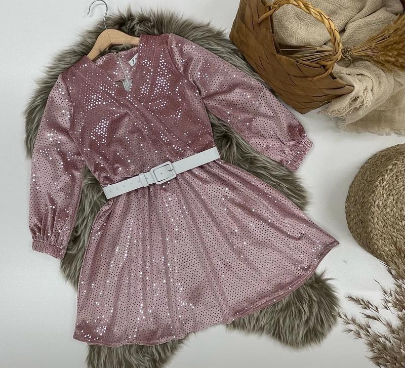 Арт 4122 Праздничное платье приталенная под поясок по спинке глубокая молния Ткань игривый велюр с пайетками красиво переливается Поясок в комплекте Супер качества Рост/длина/пог/рукав от горловины похибка+-2см 128/69/31/48-2шт 152/78/37/59-1шт