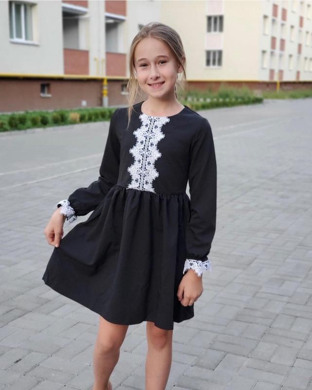 Классическое школьное платье для девочек. Рукава отделаны кружевными манжетами, Полочка тоже украшена кружевом. тканина костюмка, НЕ ТЯГНЕТЬСЯ, ПОЛНОМЕР разм/ПОГ/длина/рукав от плеча 30(116-122)/33/66/45 32(122-128)/35/67/48 34(128-134)/37/71/49 36(134-140)/39/74/51 допустима похибка +/-1-2см 116-1шт 122-2шт 128-2шт 134-3шт