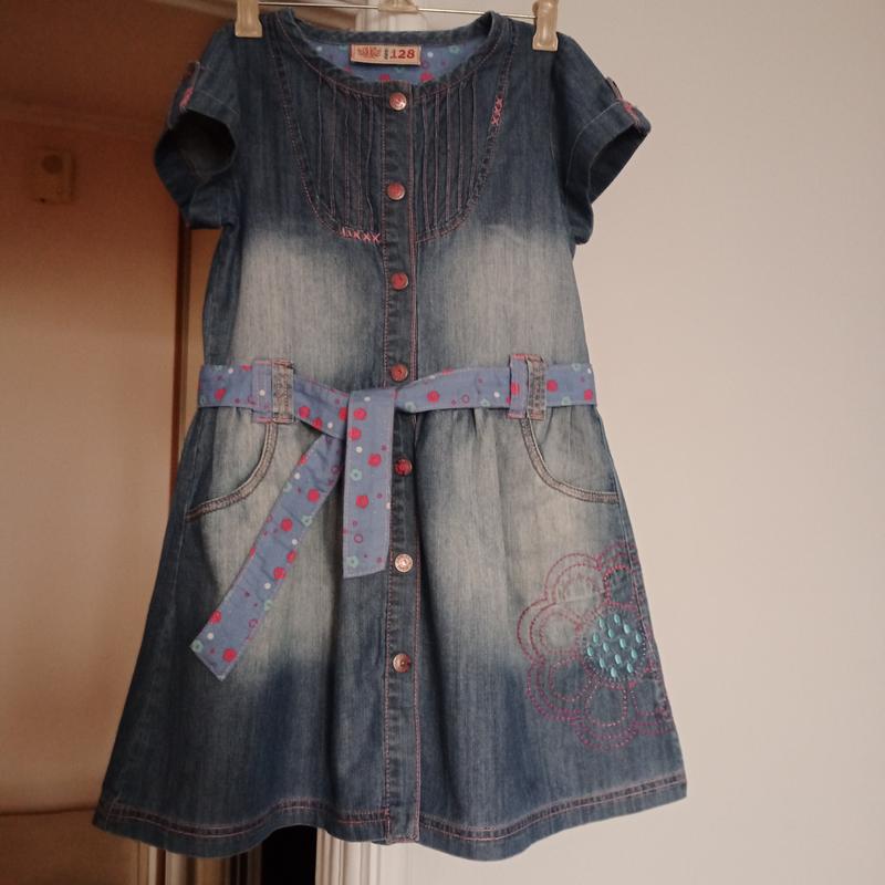 Халатик джинсовый на кнопках,легкий джинс, удобный в носке, кнопочки все работают красиво, пятен нет