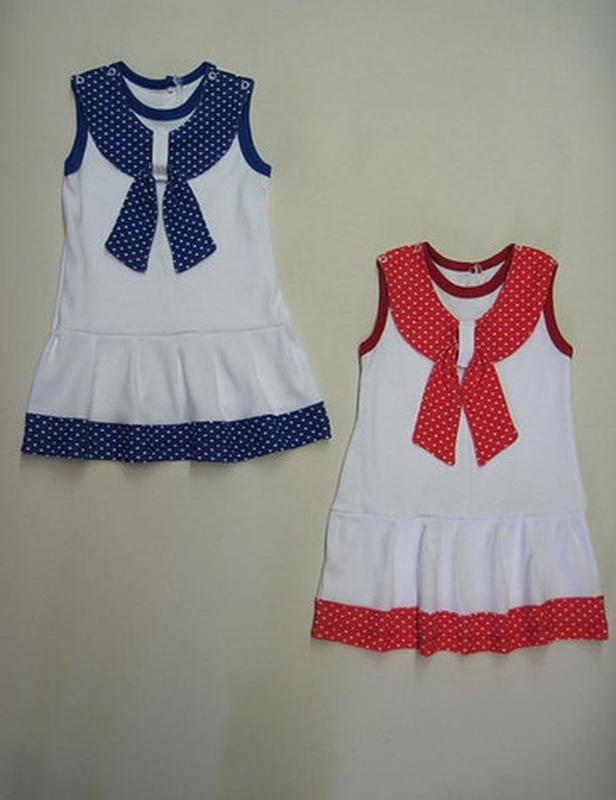 Склад тканини: 100% бавовна Декор: воротник на пуговицах Чрезвычайно привлекательное летнее платье из трикотажа в полоску. Декорировано воротником в виде галстука, которая придает модельке одесский акцент. Этот наряд не потеряет свой внешний вид после многочисленных стирок, подарит Вашей любимой озорнице комфорт и легкость движений. Размер 26 на рост 86-92 см, длина 44 см, полуобъем 26 см. (в наличии с красным воротником)