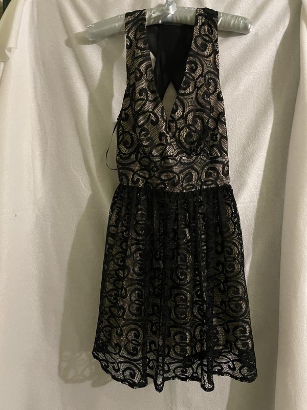 Мереживне, на підкладці, на спинці дуже гарно оформлене. Збоку молнія. Талія 33 см. Довжина 88 см