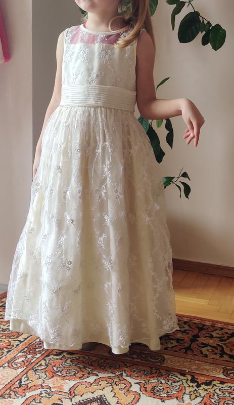 длина 90. на фото рост 114 см. ОГ 33, регулируется поясом. По наборке 8 р( 128см), тогда будет ниже колен.прокат 350 грн. Купити 950
