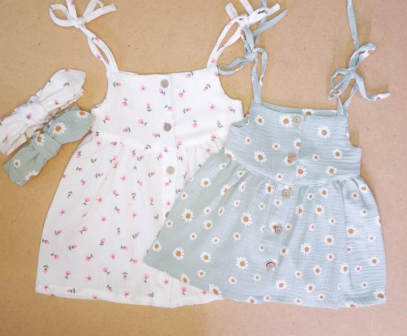 Легкие платья на завязках, ткань муслин, 100% хлопок, лучший вариант на лето. Лиф двойной. Не маломерят. Размеры 80-134 Цена 8********,110 - 390 грн, с солошкой 450 грн 116,122,128,134 - 420 грн, с солошкой 500 грн