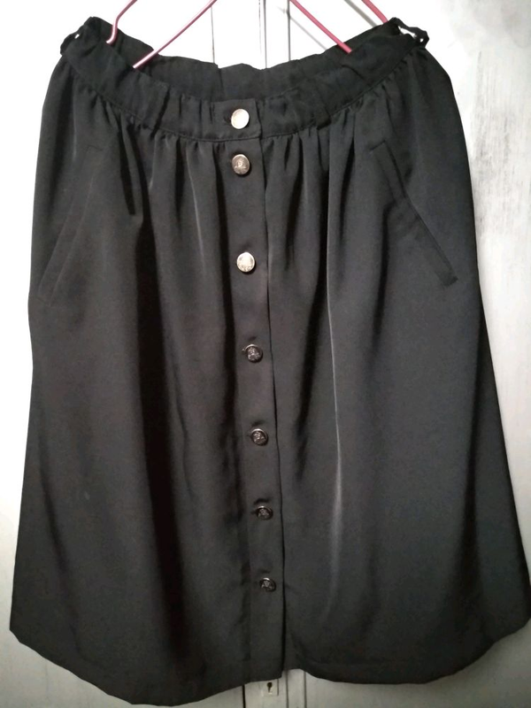 Виробник: Інший виробник Тип одягу: Спідниці Продам красивую. стильную юбочку на девочку, пойдёт на р-р 40-44. рост 156-164см. Юбка из хорошей, импортной ткани, не скатывается катышками, почти не мнётся, насыщенного чёрного цвета. Фото оттеняет, не возможно передать реальный цвет. Юбка без боковых швов, только застежка по центру переда на пробивные пуговицы, как на джинсах. Присборенная под пояс и слегка сам поясок. На хорошей плотной, трикотажной подкладке-видно на последних 2х фото. Сидит на фигуре очень красиво, носится. как удлинённая. Длина юбки -57см. Объём по поясу, половина,- 30-34см. Юбка в отличном состоянии, без нюансов, была одета считаные разы на торжества в школу. Перешлю любой почтой.