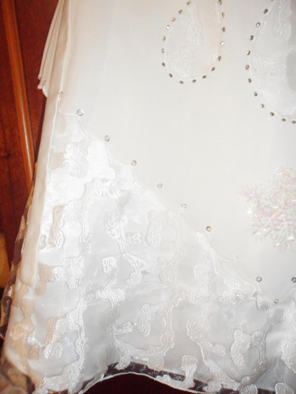 Виробник: Інший виробник Тип одягу: Плаття Продам дуже гарну сукню для дівчинки 9-11 років. Колір шампань. Можна використовувати для Новорічного ранку. (сніжинка) Одягалось 1раз на випускний 4 клас.В подарунок рукавички (пошили під замовлення) . Довжина сукні 92 див. Об'єм талії 36*2 см. Ширина плечей 31 см
