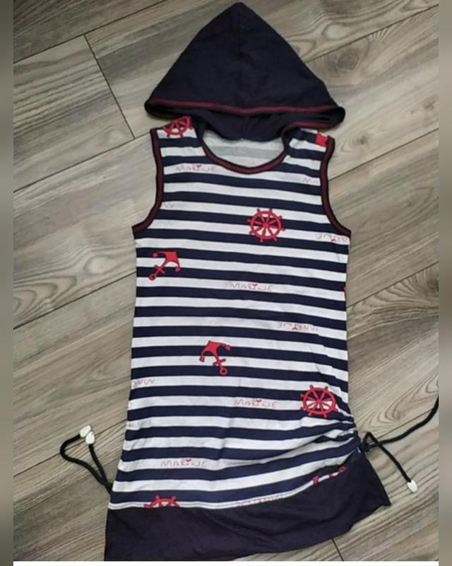 Продам мягкое,комфортное платье на жаркое лето,мы покупали на море.По бокам утяжки на шнурках, можна регулировать длину.Можна носить как тунику под лосины.Есть капюшон, позада в виде борцовки.Кольборы яркие: синий,белый, красный.Стан отличный,бирок нет, посмотрите, заміри. На вопрос ответь, перешлю
