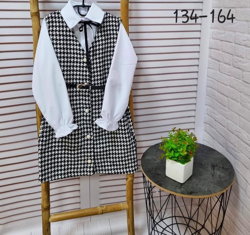 Модная стильная новиночка для маленьких модниць сарафанчик и блуза сарафанчик выполнен из турецкой плотной ткани твид блуза-софт РЕКОМЕНДУЮ 📍134(5 шт)-длина сарафана 68, пог 37,длина блузы 47, пог 39,рукав 46 140(1 шт)-довжина сарафана 72,пог 38,довжина блузи 49,пог 41,рукав 48 📍146(1 шт)-длина сарафана 74, пог 39, длина блузы 50, пог 42,рукав 50 📍164(2шт)-длина сарафана 85,пог 44,длина блузы 56,пог 47,рукав 57 +-2 см Греб