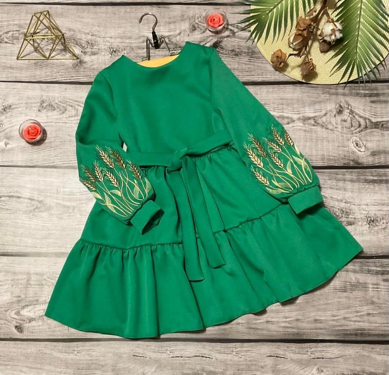 Невероятно красивое и нежное платье На рукавах ВИШИВКА!, не малюнок. По спинке застегивается на молнию. Пояс в комплекті. Ткань - костюмка барби. Замеры: 146 длина-76см, полуобхват груди - 37см, рукав - 52см. Мс
