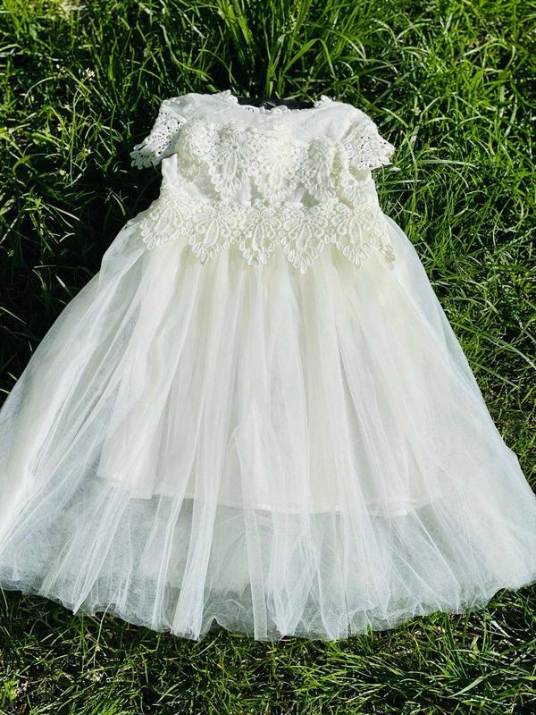 Праздничное платье для девочек. Украшена кружевом и сеткой, изысканный дизайн. Цвет айвори. Три слоя фатина + хб подкладочка. Платье удлиненное. Размеры: 100(4 шт) 110(4 шт) 120(4 шт) 130(4 шт) 140(4 шт) Замеры: 100: Длина 62, пог 24 см. 110: Длина 65, пог 26 см. 120: Длина 71, пог 27 см. 130: Длина 77, пог 29 см. 140: Длина 80, пог 31 см Ориентация на замеры, допускается погрешность в 1-1,5