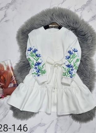 Невероятно красивое и нежное платье На рукавах вышивка ткань костюмка барби по спинке застегивается на молнию, поясок в коплекті 128(1 шт)-длина 69,рукав 45, пог 33 +-2 см