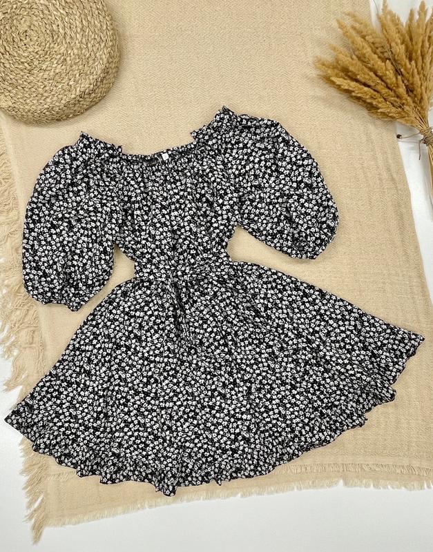 арт 4934 Весняна сукня для красунь в цветочный принт по талии под резиночку и поясок рукавчик фонариком рукавчик и верх также под резинку Тканина супер софт РЕКОМЕНДУЮ рост/длина/пог/рукав полной длины похибка+-2см 140-146/74/40/38-1шт