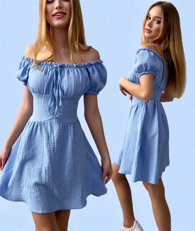 модняшка В наличии! Легкое стильное платье для девочек Завязка декоративная. Тканина - муслін. Замеры: 158 длина - 69см, полуобхват груди - 39см. S(170) длина - 73см, напиток груди - 41см.