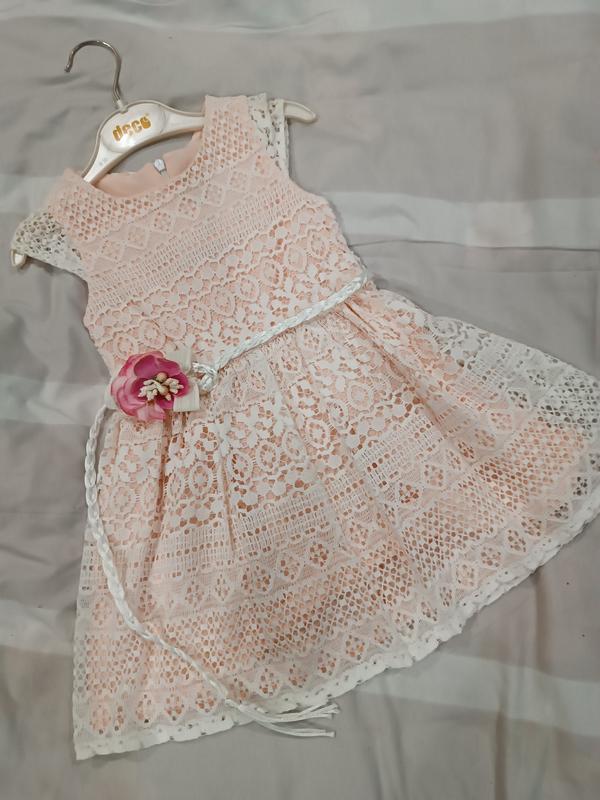 нарядное платье для девочки трикотаж, верх макроме кружево пояс декор р 2-3 р