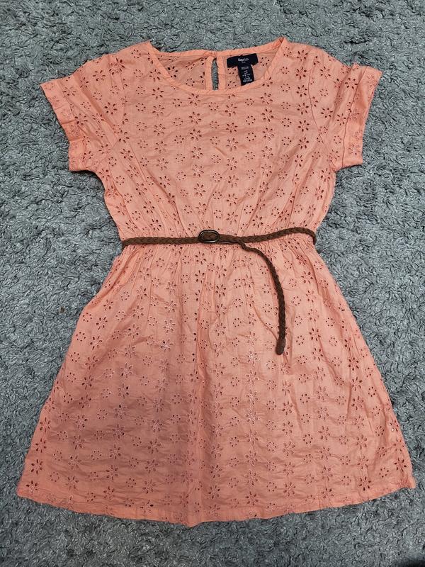 6-7лет, рост 120 длина 64см ширина подмышками 35см ширина по талии 26.5-42см и есть пояс