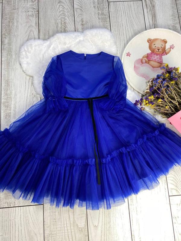 ❤️В наличии 9 цветов ❤️ Святкова сукня для маленьких принцес Ткань - королевский атлас, евросетка По спинке застегивается на молнию. Рукав короткий по локоть. 122 длина - 71см, пог - 33см 128 длина - 75см, пог- 34см 134 длина - 78см, пог - 36см +-2см