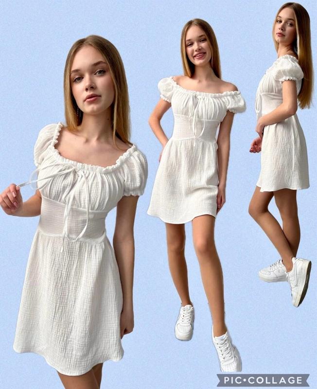 Легкое стильное платье для девочек Завязка декоративная. Тканина - муслін. Замеры: 158 длина - 69см, полуобхват груди - 39см. S(170) длина - 73см, напиток груди - 41см. Мс