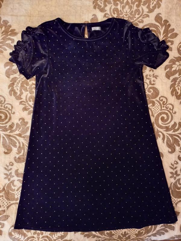 Платье на 11 лет на рост 146 см, тканевая бархат, по бархата 3D капельки золотистого цвета, длина 75 см, в плечах 34 см, между рукавами по комде 40 см