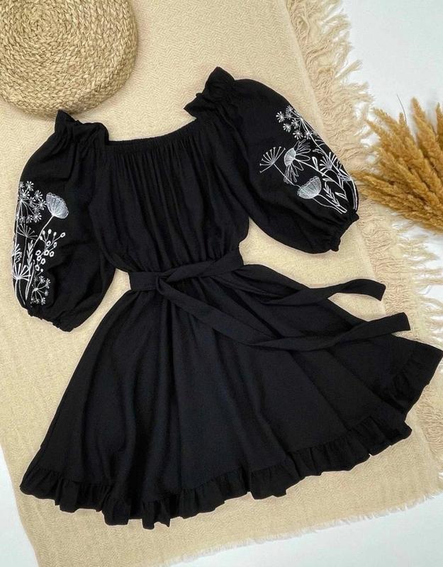 Арт 5050 2 Платье с вышивкой сухоцветов чрезвычайно красивая и воплощает в себе наш украинский этатнос Тканина льон-жатка в талии под резинку и поясок Супер качество рост/длина от плеча/пог/рукав полная длина похибка+-2см 140-146/76/40/38-2шт