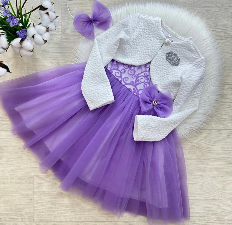 Невероятного красоты платье с болеро и обручем в комплекте ❤️❤️❤️ Красивая, пышная, украшенная изысканными деталями 🥰😍🥰 Четыре слоя фатина 😍 Пишний бант позаду 🎀 Застежка- потайная молния 🥰 Болеро на пуговице и украшено лого из камушков 🤩 Обруч с бантиком в тон платья 🎀 Есть подкладка 👌🏻 Ткань: Платье: верх- кружево/ низ- фатин с подкладкой 💞 Болеро: французский трикотаж 🌸 Производитель: Украина 🇺🇦 ЗАМІРИ +/-1-2см!!! ▪ ▪р.128- Платье: длина 76см/ длина юбки 46см/ ПОГ 35см/ ширина талии 32см. Болеро: длина 24см/руав 46см