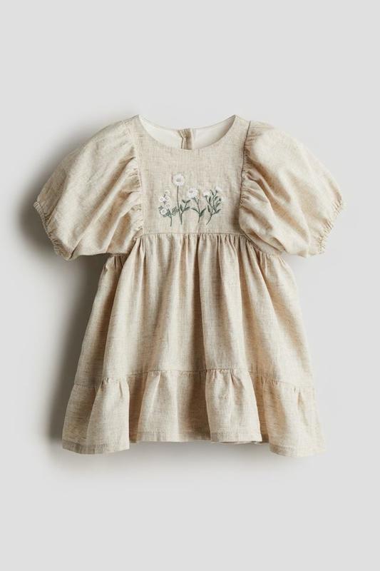 Цена 1850 грн 12-18 месяцев 86 размер Платье из воздушного льна и хлопка с декоративной вышивкой на груди. Модель с круглой горловиной, узкой кокеткой и пуговицами из имитации дерева на спине. Максимальный объем рукавов-духов с собранными швами на плечах и тонкой резинкой на манжетах. Собранный шов на талии и оборки. Подложенная кокетка. 1227637001