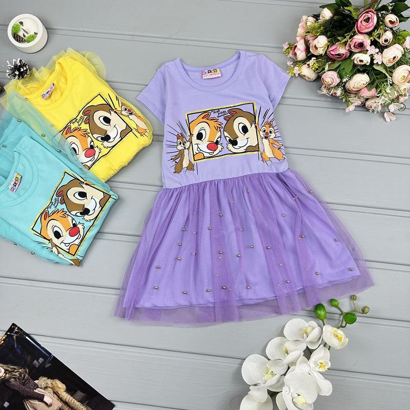 🦋Платье Бурундуки с коротким рукавом и фатином. Рисунок-кат. Фатин мягкий, бусинки красиво закреплены. Ткань двухнить Производитель Турция 📐Замеры: маломерят (110-116) - длин.52/ полуобхив. 28 (134-140) - длин.57 / полуобхв. 32