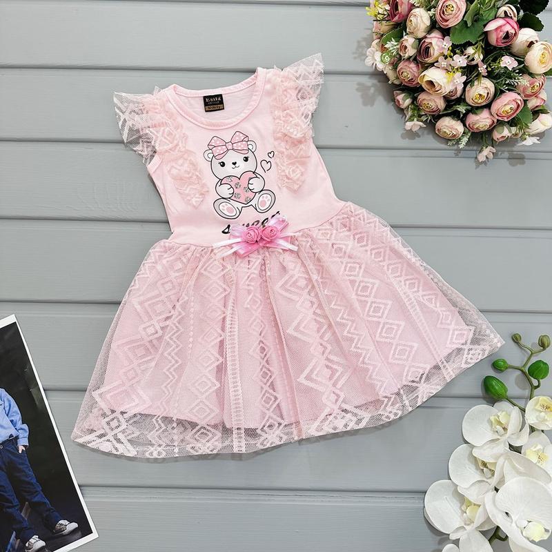 🦋Платье мешка розовое с кружевной юбкой и украшенными рукавами. Рисунок-кат. Бантик с цветами отстегивается. Производитель Турция 📐Замеры: 92 - длин.46 / полуобхв. 21