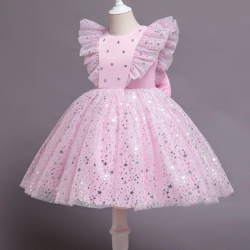 Невероятно красивое нарядное платье для ваших принцесс 🔥 Украшена камушками 😍🛑😍 Идеально подойдет для праздников, фотосессий, ранков и дней рождения ❣️🔥🥰 Ткань -атлас +многослойный фатин с блестящими звездочками 💥 Подкладка -хлопок Сзади застегивается на молнию. 90 - длина 53 см, пог 26 см (4шт) 100 - длина 57 см, пог 27 см(4шт) 110 - длина 61 см, пог 30 см(4шт) 120 -длина 65 см, пог 31 см(6 шт) А