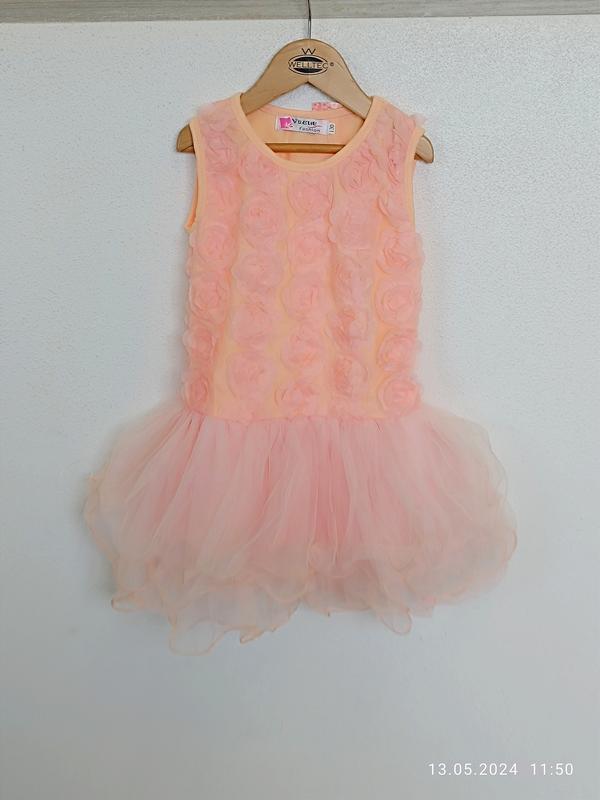 Нова. Очень нежное праздничное платье. Размер подойдет на 3-5роков в зависимости от ребенка и от того какой длины Вы хотите чтобы было платье. Длина 55см ПОГ 30см по спинке трикотаж тянется.